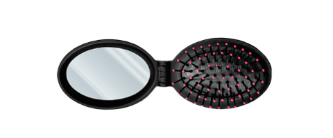 Folding and practical 2 in 1, brush and mirror, gently detangles hair. It perfectly fits in a purse and is a must-take for travel or to beach. The mirror lets you discreetly check on your looks anytime you want. Always at the ready when you want to brush up your look.
